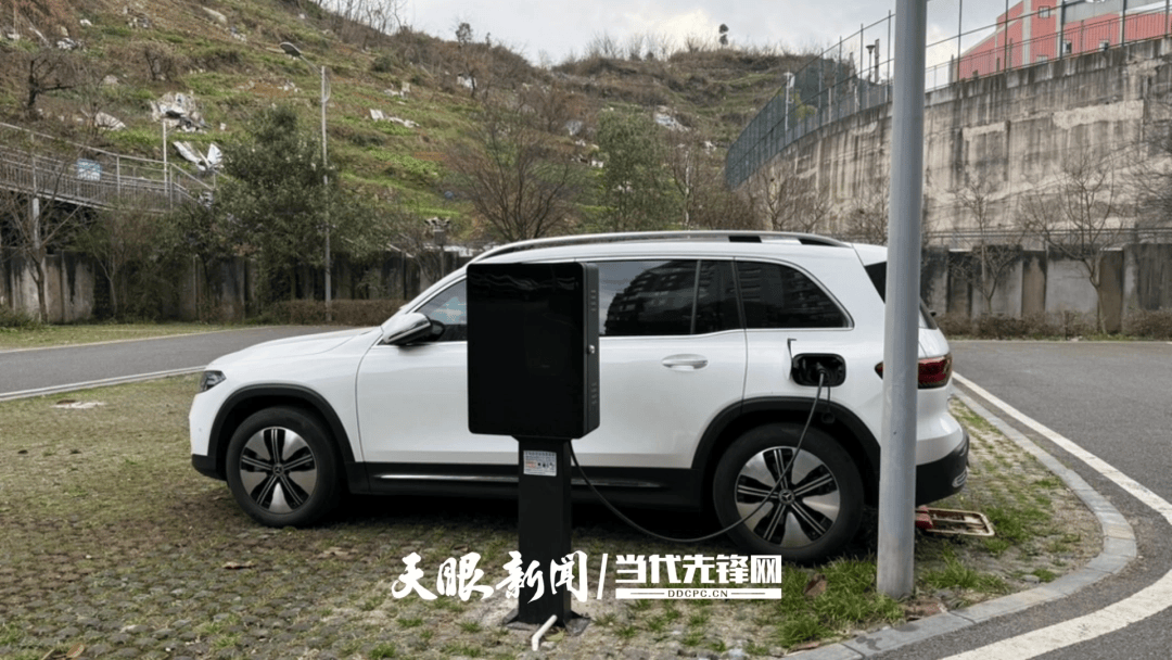 1月20日,记者来到贵阳市观山湖区的龙潭·春天小区。在地面停车场上,一辆新能源汽车正在充电,记者查看其使用痕迹,推测应该是刚安装不久。
